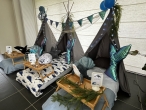 v Basispakket (tipi tentje,luchtmatras met opblaaspomp, hoofdkussen en dekbed)