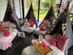 v Basispakket (tipi tentje,luchtmatras met opblaaspomp, hoofdkussen en dekbed)