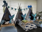 v Basispakket (tipi tentje,luchtmatras met opblaaspomp, hoofdkussen en dekbed)
