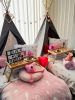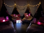 v Basispakket (tipi tentje,luchtmatras met opblaaspomp, hoofdkussen en dekbed)